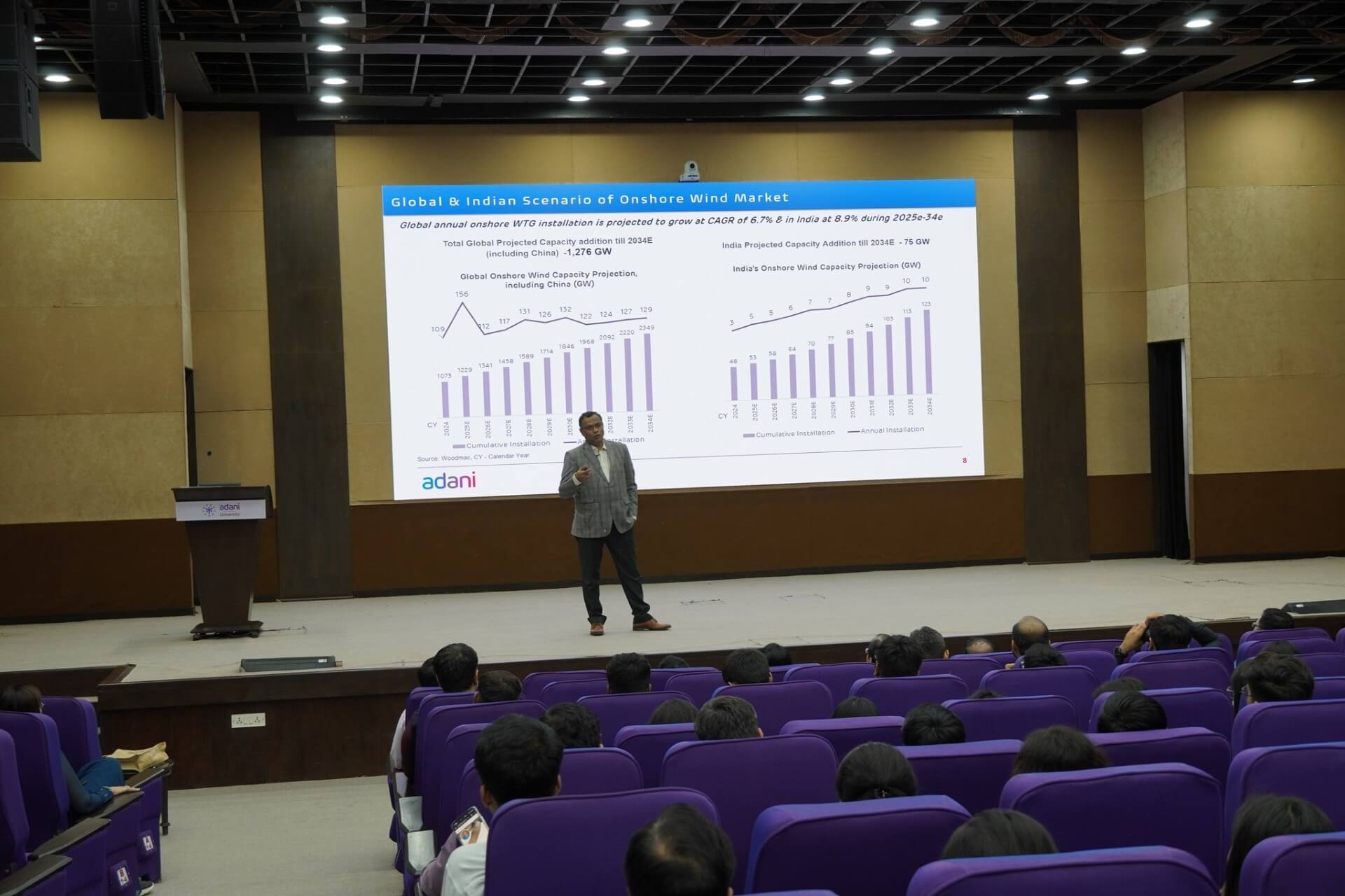 On 24th September 2025, students at Adani University became more than just attendees—they were active participants in an engaging discussion led by Mr. Milind Kulkarni, CEO of Adani Wind. Rather than simply lecturing about wind turbines, he challenged all to think like both entrepreneurs and engineers.