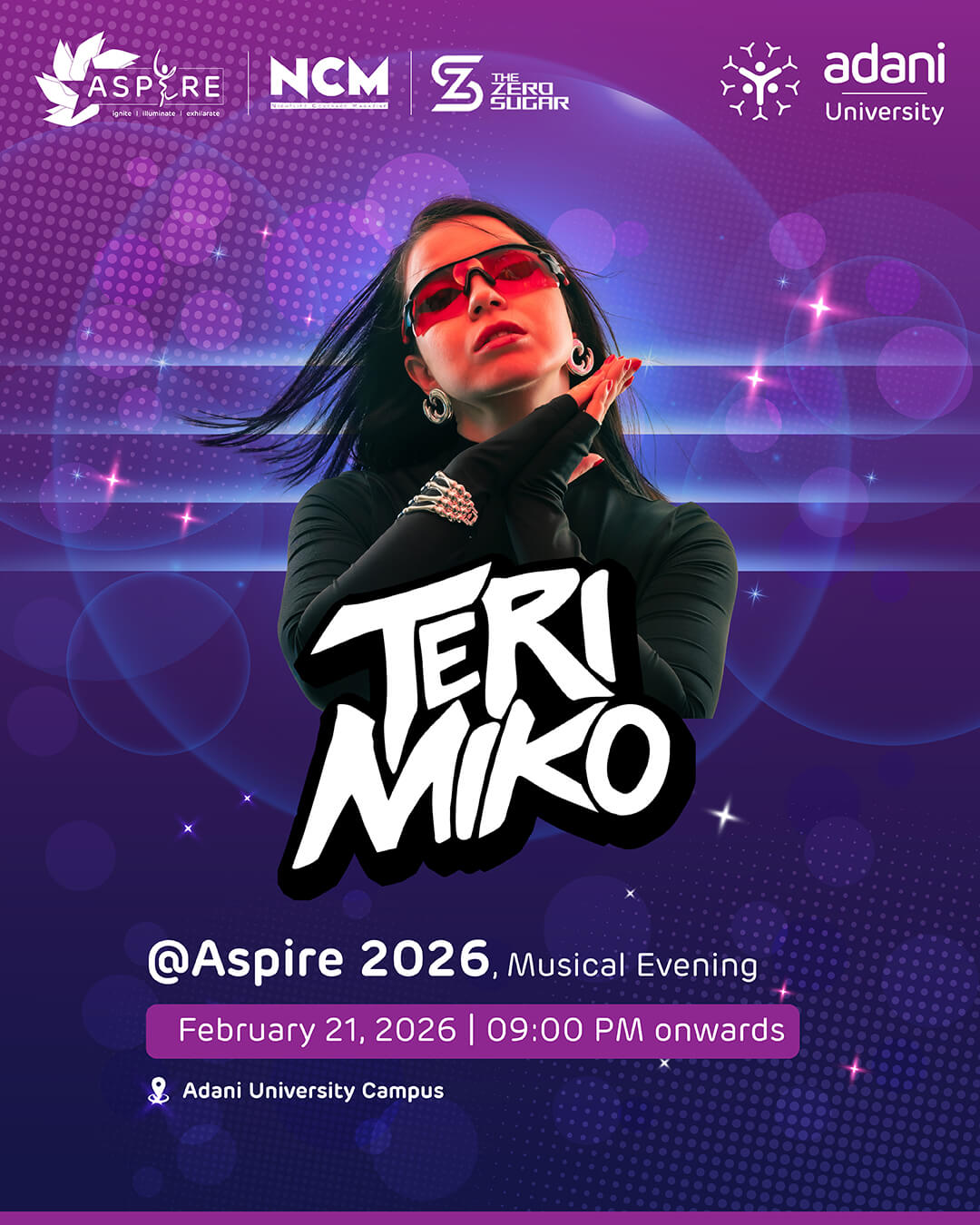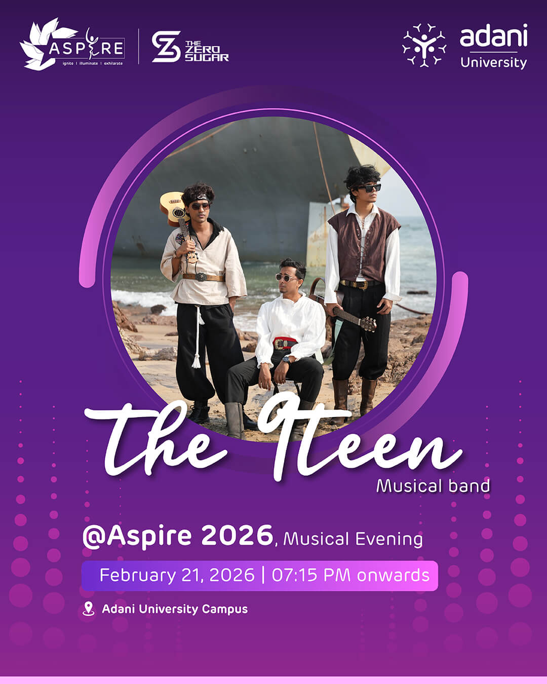 “Aspire”, the aspiration of collaborating the youth at Adani University, Ahmedabad by providing a platform to ‘ignite’, ‘illuminate’, and ‘exhilarate’ their passion to achieve something big